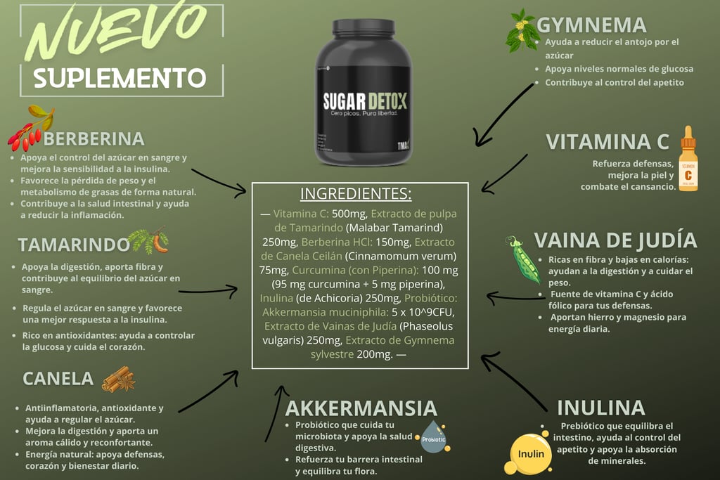 Nuestra apuesta por nacer lanzando SUGARDETOX surgió tras comprobar que la sinergia de sus componentes, además de ser completamente funcional y tener un perfil antioxidante potente. También posee más beneficios que inicialmente no se buscaron.