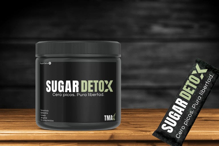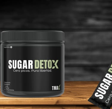 SUGARDETOX Actualmente es uno de los suplementos más funcionales que, gracias a sus ingredientes y la sinergia entre ellos, evita picos de glucemia (Al menos -38%, Univ Complutense/NIH 2024 aplicado a algunos ingredientes utilizados) de manera contundente y recupera la vitalidad corporal sin el "crash" generado por la glucosa. Sus propiedades lo convierten en el aliado ideal para Estudiantes, Atletas post-entreno y para las personas que deseen contrarrestar los efectos nocivos debido al exceso del azúcar, harinas y alimentos procesados comunes.